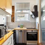 Geniet van een ingerichte keuken in Loftwohnung Im Fabrikstil - Direkt In Gross-Umstadt - 300 M Bis Zum Marktplatz appartement met een waterkoker, een koelkast en een oven voor uw gemak. De Medic Center bushalte is op wandelafstand van 5 minuten hiervandaan.